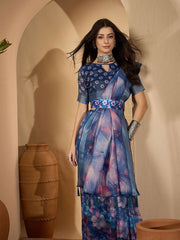 Its digitally printed pallu showcases intricate floral artwork with a subtle traditional touch, giving it a classy and timeless look suitable for casual to festive styling.