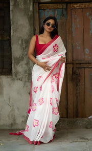 Designer Banzaran Linen Cotton Saree with HD Print & Tassels