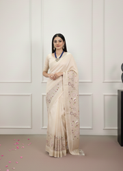 Designed with intricate Embroidery Beads Work and a beautifully woven Zari Weaving Border, this saree blends luxury and sophistication — perfect for festivals, weddings, parties, and traditional celebrations.