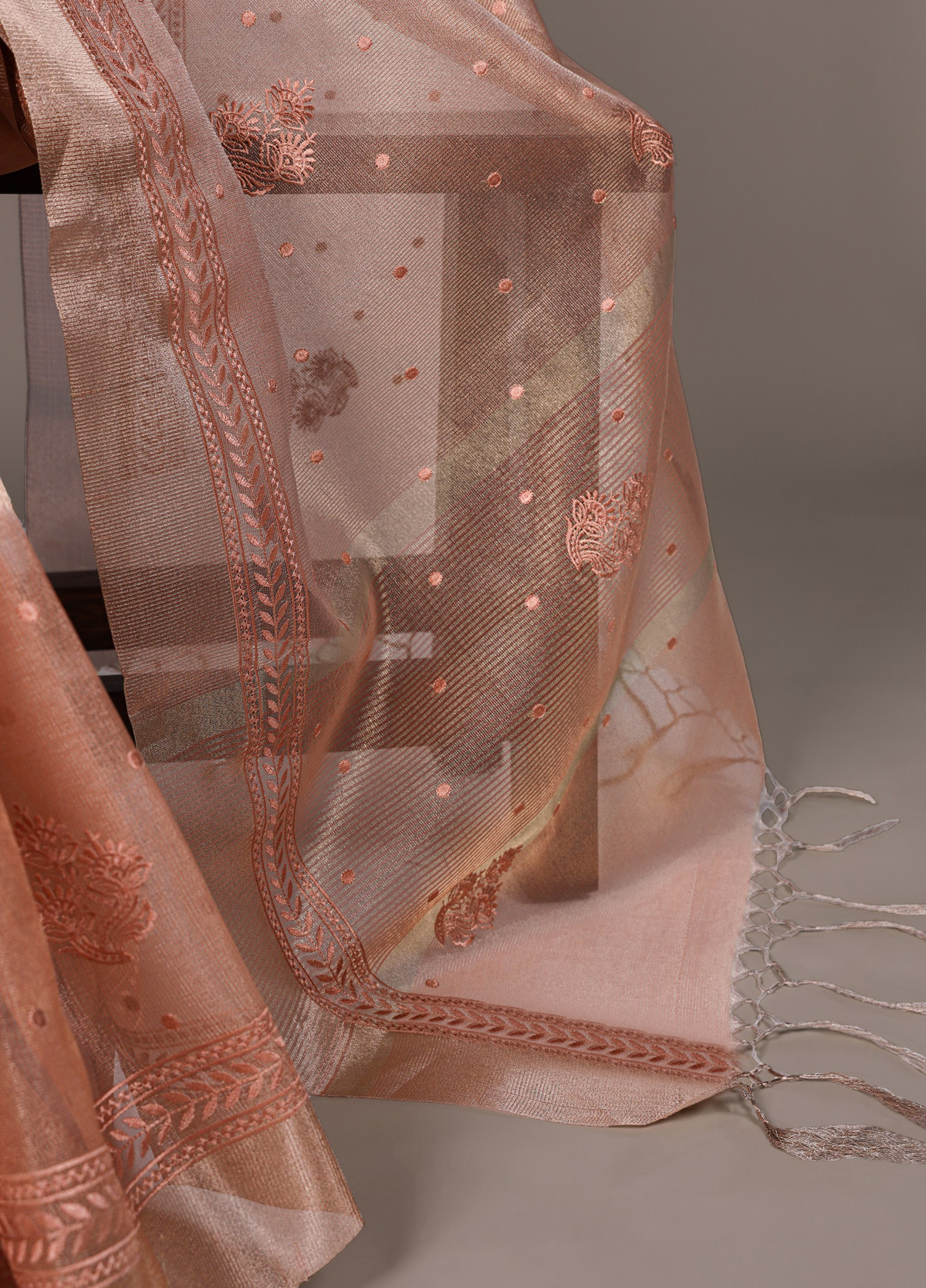 Lightweight Party Wear Shine Orange Poly Shimmer Saree with Thread Embroidery