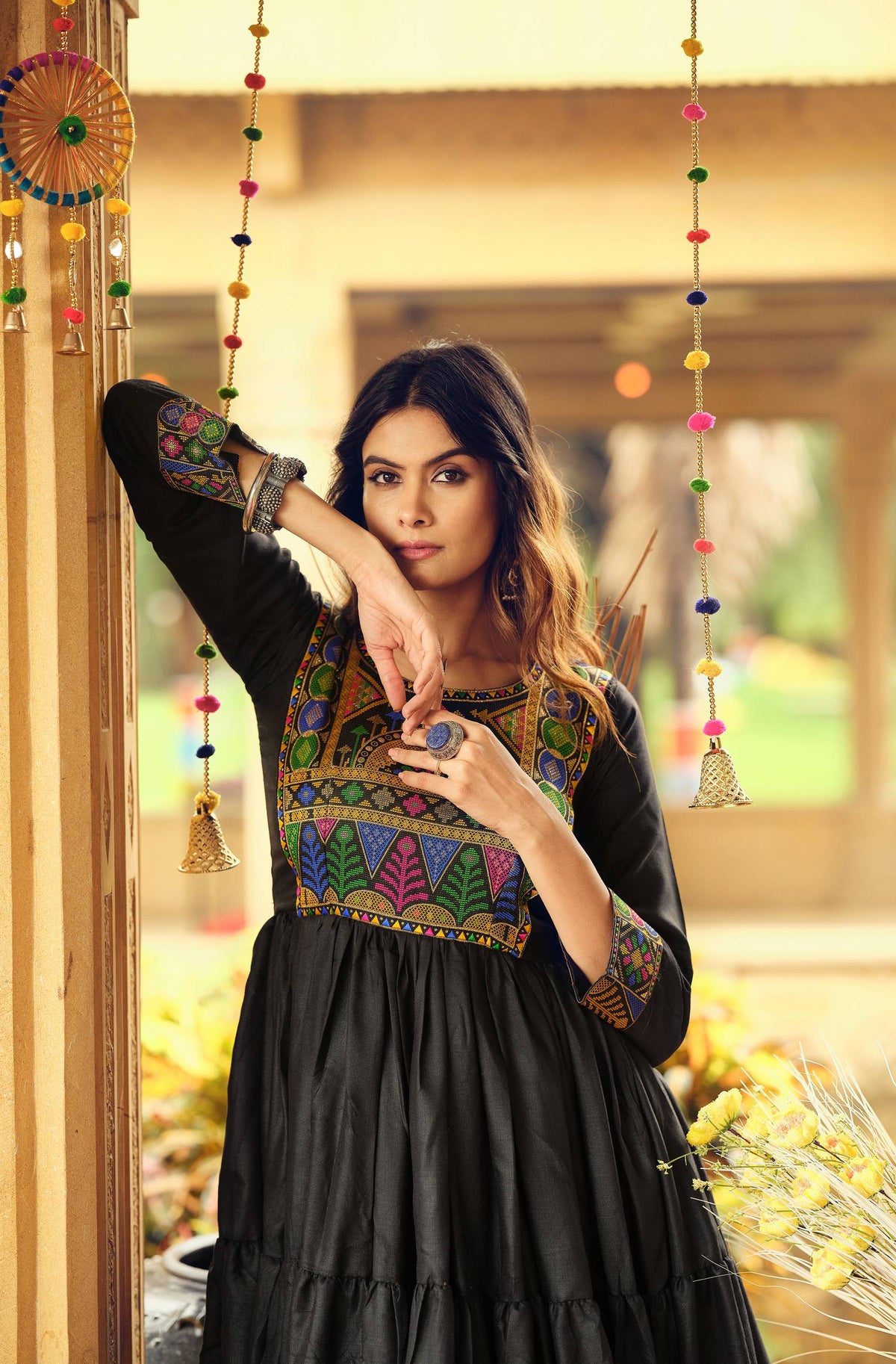 Designed with high-quality stitching, breathable fabric, and premium ethnic detailing, this gown is perfect for weddings, festive functions, garba nights, parties, and traditional celebrations.